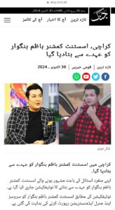 ہاضم بھنگور کو کمشنر کراچی آفس سے سروسز اینڈ جنرل ایڈمنسٹریشن رپورٹ کرنے کی ہدایت