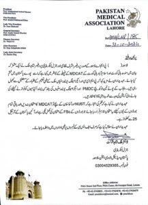 عہدیداران نے کہا ہے کہ ظلم کی انتہا ہے کہ NUST اور آغا خان کے بچے تو MDCAT کا امتحان نہ دیں اور باقی تمام بورڈوں کے بچوں کیلئے یہ امتحان لازم قرار دیا جائے جو بورڈوں کے FSc کے امتحان کی مکمل نفی ہے اور آئین پاکستان کے آرٹیکل 25 سے کھلواڑ ہے۔