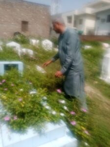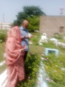 امی جان ، نوید بھائی ، میں اور عظمی سالک سٹی ہاؤسنگ سے جہلم چھاونی قبرستان پہنچے ۔ ہم تینوں کو اپنی نانی امی کا دور اچھی طرح یاد ہے جہلم چھاؤنی میں ہی ان کے ساتھ گزارے دن کیسے بھلا سکتے ہیں وہ بہت شفقت محبت اور پیار کرنے والی بزرگ ہستی تھیں پورے خاندان کے لیے ایک روشن مثال تھیں ان کی آخری آرام گاہ پر حاضری کا موقع ملنا بھی اعزاز کی بات ہے ہمارے پیارے خالو جان قیوم قریشی بھی اسی قبرستان میں آرام فرما رہے ہیں قبرستان میں داخل ہونے کا چھوٹا داخلی دروازہ ہے جس کے بعد پہلے تو خالو جان کی قبر آتی ہے اور پھر قبرستان کے دوسرے کونے پر نانی امی ( اماں جی رشید ہ) کی قبر ہے بزرگوں کی قبروں پر فاتحہ خوانی کی ۔