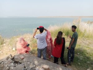 جہلم چھاونی سے واپسی پر سٹی ہاؤسنگ آگئے گھر پر سب انتظار کر رہے تھے کہ عبداللہ کب اپنی دلہن کو لے کر اسلام اباد سے جہلم پہنچتا ہے تب ہم نے فیصلہ کیا کہ اتنی دیر میں منگلا ڈیم دیکھ کر آتے ہیں ایک گاڑی میں جو لوگ جا سکتے تھے وہ تیار ہو گئے اور یوں اچانک منگل ڈیم کی سیر کا پروگرام بنا اور ہمیں اتنے مختصر دورانیے کی سیر سے روکنے کی کافی لوگوں نے کوشش کی لیکن ہم رکے نہیں اور چل پڑے ۔اس ضد کی ایک وجہ یہ بھی تھی کہ پچھلی مرتبہ بھی جب جہلم گئے تھے تو منگلا ڈیم نہیں جا سکے تھے دو گاڑیوں میں نکلے تھے روہتاس قلعہ کی طرف ۔ واپسی پر منگلہ ڈیم جا رہے تھے تو راستے میں کسی کی طبیعت ناساز ہو گئی تھی اور ہم لوگ ریلوے پھاٹک سے واپس آگئے تھے دوسری گاڑی میں جو لوگ تھے وہ منگلا ڈیم ریحان بھائی کے ساتھ چلے گئے تھے ۔ اس لیے ہم نے اصرار کیا کہ ہم نے منگلا ڈیم ضرور جانا ہے جو بچے منگلا ڈیم نہیں دیکھ سکے تھے ان کو ساتھ لے گئے ۔ تھوڑا فاصلہ ہے لیکن پھر بھی وقت تو لگتا ہے ۔ جہلم کی حدود ختم ہونے کے بعد جب آزاد کشمیر کی حدود شروع ہوتی ہیں تو وہاں پر شناختی کارڈ چیک ہوتا ہے اور وہیں پر گائیڈ بھی کیا جاتا ہے ۔ ماضی میں جب ہم بنگلہ ڈیم جایا کرتے تھے تو بس منگلا ڈیم کے اوپر سے گزرا کرتی تھی اب وہ پرانی سڑک عام لوگوں کے لیے بند کر دی گئی ہے اور دوسرا راستہ کھولا گیا ہے بس یہ سمجھ لیں کہ منگلا ڈیم کے اوپر عام لوگوں کو جانے نہیں دیا جاتا دوسری طرف سے گھوم کر جو سڑک جاتی ہے وہ منگلا ڈیم کی جھیل تو دکھاتی ہے لیکن ڈیم نظر نہیں آتا وہاں پارکنگ فیس بھی لی جاتی ہے اور اس کے بعد کشتی کی سیر کا موقع بھی فراہم کیا جاتا ہے لیکن ہمارے پاس وقت کم تھا اس لیے ہم نے کشتی کی سیر میں دلچسپی نہیں لی اور جھیل کنارے کچھ فوٹوگرافی اور سیلفیاں بنا کر وہاں سے واپسی کا رخ کیا اور واپسی پر ہمیں ریلوے پھاا ٹک بند ملا اور راولپنڈی سے جہلم آنے والی ٹرین کا نظارہ بھی کیا جب سٹی ہاؤسنگ پہنچے تو عبداللہ اپنی چاند جیسی دلہن یسری کو اس کے میکے اسلام آباد سے لے کر آ چکا تھا ماشاءاللہ ہماری یسرا بہو بہت خوبصورت اور پیاری بچی ہے اس کے آنے سے گھر میں چار سو رونق ہے اللہ نے بہت پیاری جوڑی بنائی ہے دعا ہے اللہ ان کو ہمیشہ خوش و خرم رکھے ۔آمین