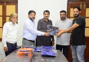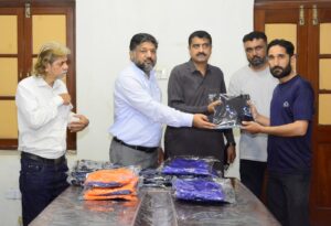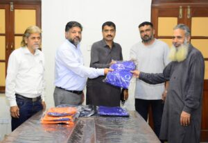 کراچی پریس کلب کے اسٹاف میں نیا یونیفارم تقسیم کرنے کی تقریب، صدر کراچی پریس کلب سعید سربازی ، سیکریٹری شعیب احمد ، سیکریٹری کینٹین کمیٹی کفیل الدین فیضان ، منیجر رئیس جعفری، ڈپٹی منیجر ایڈمن اینڈ ایچ آر عبد الغفور اور اسٹنٹ منیجر شاہنواز جونیجو موجود ہیں
