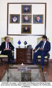 وزیراعلیٰ سندھ سید مراد علی شاہ سے آسٹریلیا کے ہائی کمشنر نیل ہاکنس کی ملاقات