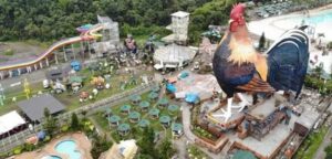 یہ خوبصورت ہوٹل 114.7 فٹ بلند ہوٹل دور سے دیکھنے میں ایک جہازی سائز اصل مرغے کی طرح دکھائی دیتا ہے۔
