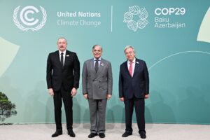 وزیرِاعظم محمد شہباز شریف آج باکو میں کاپ-29 کلائیمیٹ ایکشن سربراہی اجلاس سے خطاب کریں گے. وزیرِ اعظم اپنے خطاب میں ترقی پذیر ممالک کی ماحولیاتی تبدیلی کے مضر اثرات کی وجہ سے معاشی مشکلات پر روشنی ڈالیں گے اور عالمی ماحولیاتی معاشی وعدوں کی تکمیل پر گفتگو کریں گے.