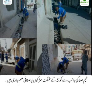 کوئٹہ16نومبر:ٹیم صفا کی جانب سے کوئٹہ میں صفائی مہم جاری ہے۔صفا کوئٹہ کی جانب سے ہفتہ 16 نومبر کو شہر کے مختلف علاقوں میں صفائی کا کام مکمل کیا گیا جس میں طوغی۔ روڈ،علمدارروڈ،علی بھائی روڈ سے کچرے کے ڈھیر اٹھائے گئے۔ جبکہ کلی شابو،پیر ابوالخیر روڈ پر بھی عوامی شکایات کا ازالہ کرتے ہوئی کچرے کے ڈھیر اٹھائے گئے،سرکی روڈ نیواسماعیل کالونی، پشتون آباد میں بھی صفائی کا کام۔مکمل کیا گیا، علاؤہ ازیں مسجد روڈ، طوغی روڈ، کواری روڈ اور پرنس روڈ پر نالیاں کھولنے کیلئے ایمرجنسی بنیادوں پر کام کیا گیا، صفا کوئٹہ کی انتظامیہ کا کہنا ہے کہ شہر کو صاف ستھرا رکھنے اور عوام کو بہتر ماحول فراہم کرنے کا مشن جاری رہے گا، عوام ٹیم صفا کے ساتھ اپنا بھرپور تعاون جاری رکھے۔