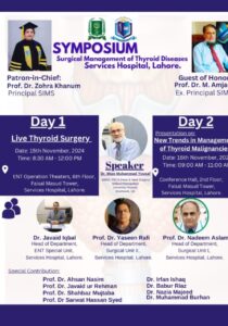 ہور(مدثر قدیر)سروسز ہسپتال کے شعبہ ای این ٹی اور سرجیکل ڈیپارٹمنٹ کے زیر اہتمام دو روزہ تھائرائڈ یعنی گلہڑکی بیماریوں کے بارے میں ایک ورکشاپ کا انعقاد کیا گیا جس کے چیف آرگنائزر شعبہ ای این ٹی اسپیشل کے سربراہ پروفیسر جاوید اقبال تھے ابتدائی سیشن کہ صدارت پرنسپل سمز پروفیسر زہرا خانم نے کی جبکہ مہمان خصوصی انگلینڈ سے ائے ہوئے پروفیسر ڈاکٹر یوسف میاں تھے اس موقع پر انھوں نے تھائی رائیڈ کی لائیو سرجری کرتے ہوئے ہاؤس آفیسرز اور پی جی آرز کو گلہڑ کی سرجری کے بارے میں مکمل آگاہ کرتے ہوئے اس آپریشن کی تمام جزیات بارے آگاہی فراہم کی اور آپریشن میں معاون اور مددگار ٹولز بارے بتایا۔سیشن کے دوران سروسز انسٹیٹیوٹ کےپروفیسر آف سرجری یاسین رفیع اور پروفیسر ندیم اسلم نے بھی شرکت کی اور نوجوان ڈاکٹرز کو موضوع کی مناسبت سے آگاہی فراہم کی ،پہلے دن سیشن کے اختتام پر پرنسپل سمز نے شرکاء میں سرٹیفیکیٹ تقسیم کیے۔ دوسرے دن سمپوزیم میں تھائی رائیڈ کینسر سے بچاؤ اور تحفظ بارے سیشن کا انعقاد ہوا جس میں سابق پرنسپل سمز پروفیسر محمد امجد سمیت دیگر ماہرین نے شرکت کی جبکہ مہمان خصوصی پروفیسر یوسف میاں نے شرکاء کو تھائی رائیڈ کینسر بارے آگاہی دیتے ہوئے جدید تحقیق بارے آگاہ کیا اور شرکاء کے سوالوں کے جواب دیے۔اس سیشن میں شعبہ ای این ٹی سے وابستہ ڈاکٹرز کی کثیر تعداد نے شرکت کی اور اپنے سوالوں کے جوابات تفصیل سے سنے۔اس سیشن میں پروفیسر ڈاکٹر ندیم اسلم، پروفیسر یاسین رفیق، پروفیسر ایس ڈاکٹر ظفر مینگل ،ڈاکٹر عرفان بھی شرکاء میں شامل تھے