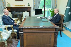 وزیر اعظم محمد شہباز شریف سے سینٹ میں پاکستان مسلم لیگ (ن) کی پارلیمانی پارٹی کے لیڈر اور سینیٹ کی خارجہ امور کی قائمہ کمیٹی کے سر براہ سینیٹر عرفان صدیقی کی وزیراعظم ہاؤس اسلام آباد میں ملاقات