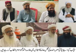 جمعیت علماء اسلام صوبہ سندھ کی مجلس عاملہ کا اہم اجلاس مولانا عبدالقیوم ہالیجوی کی صدارت میں ہوا، اجلاس میں صوبائی جنرل سیکریٹری علامہ راشد محمود سومرو نے 23نومبر کو کراچی میں ہونے والی آل پارٹیز کانفرنس کے متعلق جلاس کو آگاہ کیا، اس موقع پر صوبائی رہنما مفتی سعود افضل، ڈاکٹر اے جی انصاری، مولانا محمد رمضان پھلپوٹو، مولانا محمد اسحاق لغاری، سلیم سندھی بھی موجود تھے۔ اجلاس میں خطاب کرتے ہوئے صوبائی سیکریٹری جنرل علامہ راشد محمود سومرو نے کہا کہ دریائے سندھ سے 6کینال نکالنے اور سندھ کے پانی کی چوری کے خلاف 23نومبر کو کراچی میں آل پارٹیز کانفرنس کا انعقاد کیا جارہا ہے جس میں حکمران جماعتوں سمیت تمام سیاسی و قومپرست جماعتوں کو شرکت کی دعوت دی ہے، آل پارٹیز کانفرنس میں سندھ کے بنیادی مسائل پرغور کیا جائے گا خصوصاً دریائے سندھ پر ڈاکے کے خلاف متفقہ لائحہ عمل تیار کیا جائے گا، راشد محمود سومرو نے کہا کہ جے یو آئی سندھ کے پانی پر ڈاکے کو کسی صورت قبول نہیں کرے گی اس کے لیے ہر محاذ پر جدوجہد کریں گے، اس موقع پر جے یو آئی کے صوبائی ترجمان ڈاکٹر اے جی انصاری نے کہا کہ آل پارٹیز کانفرنس کی میڈیا کوریج کے لیے تمام صحافیوں کو دعوت دی گئی ہے تاکہ صحافی سندھ کے مسائل پر ہونے والی کانفرنس کو مکمل کوریج کرکے ہماری آواز پوری قوم اور اقتدار میں بیٹھے حکمرانوں تک پہنچائیں۔