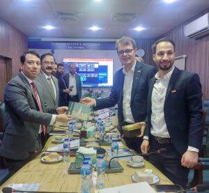 کے ٹیکنیکل اینڈ انجینئرنگ ڈائریکٹوریٹ کے ساتھ شیئر کیا جاسکتا ہے اس موقع پر وفد نے واٹر کارپوریشن کی طرف سے اپنے نان ریونیو واٹر کو کم کرنے اور واٹر کارپوریشن کے موجودہ عملے کی استعداد کار میں اضافے پر قریب سے کام کرنے کے لیے اپنائی گئی مختلف حکمت عملیوں کے لیے تکنیکی مدد کے امکان کو اجاگر کیا وفد نے اپنی رائے سے آگاہ کرتے ہوئے کہا کہ واٹر کارپوریشن میں ترقی کرنے اور خطے میں پانی کی فراہمی کرنے والی صف اول کی سہولیات میں سے ایک بننے کی بڑی صلاحیت موجود ہے وفد نے اس عزم کا اظہار کیا کہ آسٹریا کی سرمایہ کاری کمپینوں نے جیسے اس خطے میں قدم رکھا ہے ویسے واٹر کارپوریشن کے امکانات کو دیکھتے ہوئے قابل عمل منصوبے شروع کیے جا سکتے ہیں جن میں KWSSIP-2 کے لیے عالمی بینک کے ساتھ تعاون کا امکان شامل ہے آخر میں وفد نے واٹر کارپوریشن کے جدید ترین ہائیڈرنٹ مینجمنٹ اینڈ مانیٹرنگ سینٹر کا دورہ کیا اور کراچی کے چیلنجنگ جیو پولیٹیکل ماحول کے تحت اسے تیار کرنے پر انتظامیہ کی کوششوں کو