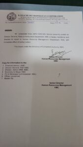 چیف سیکریٹری سندھ آصف حیدر شاہ کی ہدایت پر چار درختوں کی کٹائی کے خلاف سول لائنز تھانے میں ایف آئی آر نمبر 156/2024 درج کی گئی ہے۔ کراچی میٹروپولیٹن کونسل (کے ایم سی) کو بھی ہدایت دی گئی ہے کہ وہ ان ملازمین کے خلاف تادیبی کارروائی کریں جو اس غیر قانونی عمل میں ملوث یا غفلت کے مرتکب پائے گئے۔ اس سلسلے میں کے ایم سی نے دو الگ نوٹیفکیشنز جاری کیے، جن کے تحت ڈائریکٹر جنرل پارکس اینڈ ہارٹیکلچر اور ڈائریکٹر ایم یو سی ٹی، کے ایم سی کو ہیڈکوارٹر رپورٹ کرنے کا حکم دیا گیا۔ کراچی میٹروپولیٹن کارپوریشن (کے ایم سی) نے فوری طور پر چار افسران کو معطل کر دیا ہے۔ معطل کیے گئے افسران میں ڈپٹی ڈائریکٹر مقبول احمد، اسسٹنٹ ڈائریکٹر محمد آصف، انسپکٹر خالد لطیف، اور مالی جہانگیرالدین شامل ہیں۔ ان افسران کو ہدایت کی گئی ہے کہ وہ ہیومن ریسورسز مینجمنٹ ڈپارٹمنٹ کو رپورٹ کریں۔