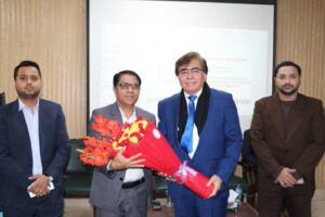 محتسب پنجاب کی آگاہی مہم کے سلسلہ میں گورنمنٹ گریجوایٹ کالج فار بوائز ماڈل ٹاؤن میں ایک سیمینار کا اہتمام کیا گیا جس کی صدارت پرنسپل گورنمنٹ گریجوایٹ کالج فار بوائز ماڈل ٹاؤن ڈاکٹر ثاقب شہزاد نے کی۔ صوبائی محتسب کے میڈیا ایڈوائزر عبدالباسط خان نے اس موقع پر خطاب کرتے ہوئے اس ادارے کی افادیت اور تیزی سے انصاف فراہم کرنے کی صلاحیت سے طلبہ کو آگاہ کیا۔ انھوں نے کہا کہ دفتر محتسب پنجاب انصاف کا ادارہ سستا اور بروقت انصاف 45 سے 60 دنوں کے اندر فراہم کرتا ہے جس میں کسی وکیل کی ضرورت نہیں ہوتی اور پورے پنجاب کے تمام اضلاع میں ایڈوائزز ہمہ وقت عوام کی خدمت کیلئے دستیاب ہیں اور اس کی ہیلپ لائن 1050 پر 24 گھنٹے اپنی شکایت درج کروائی جاسکتی ہے۔ اس موقع پر سینئر رجسٹرار صوبائی محتسب شاہد عباس نے شکایت درج کروانے سےمتعلق مختلف مراحل سے آگاہ کیا۔ شاہد عباس کا کہنا تھا کہ محتسب پنجاب کسی بھی شکایت پر ازخود نوٹس لے سکتے ہیں۔ مختلف محکموں کی ممکنہ خامیوں کو نہ صرف اجاگر کرتے ہیں بلکہ حکومت پنجاب کو اس سلسلے میں اس پر قابو پانے میں حکمت عملی وضع کرنے میں مدد فراہم کرتے ہیں۔ اسسٹنٹ ڈائریکٹر میڈیا سید سبطِ حیدر نے پرنسپل ڈاکٹر ثاقب شہزاد کو انکے بہترین ورکنگ سٹائل اور پروگرام کے کامیاب انعقاد پر خراج تحسین پیش کیا۔ اسسٹنٹ ڈائریکٹر ) پی آر ( عادل اصغر نے بھی پروگرام میں شرکت کی۔پروگرام کے اختتام پر Q&A سیشن رکھا گیا اور طلبہ کے سوالات کے جوابات دیئے گئے آخر میں پرنسپل ڈاکٹر ثاقب شہزاد نے میڈیا ایڈوائزر عبدالباسط خان اور سینئر رجسٹرار شاہد عباس کو سونیئر اور پھولوں کا گلدستہ پیش کیا ۔طلبہ نے محتسب پنجاب میڈیا ونگ کا اس آگاہی پروگرام کے انعقاد پر بھرپور شکریہ ادا کیا۔