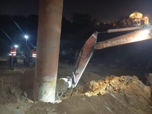 سی ای او واٹر کارپوریشن انجینئر سید صلاح الدین احمد کی ہدایت پر یونیورسٹی روڈ پر پانی کی 84 انچ ڈایا مین لائن کی مرمت کا کام تیزی سے جاری ہے
