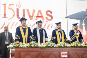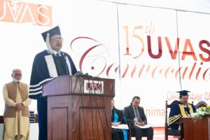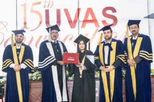 یونیورسٹی آف ویٹرنری اینڈاینیمل سائنسز لاہور کے پندرہو یں کانووکیشن کا انعقاد گذ شتہ روز ہوا۔ جس کی صدارت پرو چانسلر / وزیر برا ئے لائیو سٹاک اینڈ ڈیری ڈیویلپمنٹ ڈیپا رٹمنٹ پنجاب سید محمد عا شق حسین شاہ کرما نی نے کی جبکہ وزیر برا ئے ہائیر ایجو کیشن پنجاب را نا سکندر حیات، پارلیما نی سیکر ٹر ی برا ئے لائیو سٹاک سردار محمد عا صم شیر میکن، ویٹر نری یونیورسٹی کے وائس چانسلرمیری ٹوریئس پرو فیسر ڈاکٹر محمد یونس (تمغہ امتیاز)سمیت سینڈیکیٹ ممبران، مختلف یو نیور سٹیو ں کے پرو فیسرز، پو لٹر ی، ڈیر ی، فوڈ، میٹ اور فارما سو ٹیکل صنعتو ں کے نمائندوں، سٹیک ہولڈرز، طلبہ وا سا تذہ کی بڑی تعداد اُس مو قع پر موجودتھی۔ کا نو و کیشن میں 1,733گر یجو یٹ طلبہ کو ڈ گر یاں دی گئیں جن میں سے 277ڈاکٹر آف ویٹرنری میڈیس, 734 بی ایس آنر ز، 104 ڈاکٹر آف فار میسی،63بی بی اے آنرز، 73پی ایچ ڈی اور482 ایم فل کی ڈ گر یا ں طلبہ و طالبا ت نے و صو ل کیں جبکہ پوزیشن حا صل کر نیوا لے68 طلبہ کو میڈل بھی د یئے گئے۔