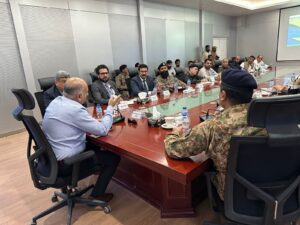 پروجیکٹ ڈائریکٹر فیض اللہ خٹک کی معزز مہمانوں کو ائیرپورٹ آپریشنل تیاریوں پر بریفنگ، پی اے اے