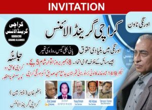کوٹہ سسٹم نامنظور چلو چلو اورنگی چلو کراچی گرینڈ الائنس کے زیر اہتمام اورنگی میں بنیادی حقوق پانی بجلی گیس اور انفرااسٹرکچر جیسے مسائل کے حل لئے 8دسمبربروزاتوار شام 5بجے بمقام سیکٹر 14بی شاہ خالد کالونی نور نای قبرستان جامعہ مسجد صدیق اکبر اورنگی میں میٹنگ منعقد کی جا رہی ہے کراچی خاص کر اورنگی کے لوگوں سے شرکت کی درخواست ہے محمد اسلم خان چیئرمین کراچی گرینڈ الائنس