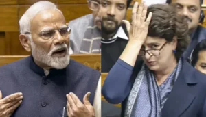 میڈیا رپورٹس کے مطابق وزیراعظم نریندر مودی کی لوک سبھا میں 110 منٹ سے زائد کی تقریر پر تبصرہ کرتے ہوئے پریانکا گاندھی نے اسے اسکول کے ریاضی کے 2 پیریڈ سے تشبیہ دی۔