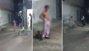 نوجوان کے خاتون کے سامنے برہنہ ہونے کی ویڈیو اسکے دوستوں نے بنائی، اوباش نوجوان کے دوست اسے دوبارہ برہنہ ہونے کا کہتے ہیں تو دوستوں کے کہنے پر وہ دوبارہ برہنہ ہوتا ہے، اس دوران ایک اور خاتون کا وہاں سے گزر ہوتا ہے۔