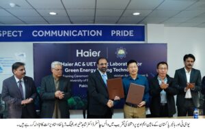 یونیورسٹی آف انجینئرنگ اینڈ ٹیکنالوجی (یو ای ٹی) لاہور اور ہائیر پاکستان ایئر کنڈیشنر کے درمیان گرین انرجی سیونگ ٹیکنالوجی کے لیے مشترکہ لیبارٹری کے قیام پر معاہدہ۔ سی ای او ہائیر پاکستان فینگ ژیانفا اور وائس چانسلر یو ای ٹی پروفیسر ڈاکٹر شاہد منیر نے دونوں جانب سے شریک مندوبین کی موجودگی میں معاہدے کی دستاویزات پر دستخط کیے۔ اس تعاون کا مقصد پائیدار توانائی کے حل میں تحقیق اور ترقی کو فروغ دینا ہے، جو پاکستان کے توانائی کی بچت اور ماحولیاتی استحکام کے اہداف سے ہم آہنگ ہے۔ یہ مشترکہ لیبارٹری گرین ٹیکنالوجی میں اختراعات کے لیے ایک پلیٹ فارم فراہم کرے گی، جس سے تعلیمی ادارے اور صنعت دونوں فائدہ اٹھا سکیں گے۔