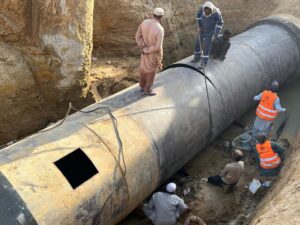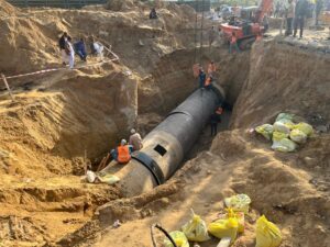 سی ای او واٹر کارپوریشن انجینئر سید صلاح الدین احمد کی ہدایت پر یونیورسٹی روڈ پر پانی کی 84 انچ ڈایا مین لائن کی مرمت کا کام تیزی سے کیا جارہا ہے