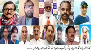 سید عبدالرشید جعفری.ابتک ٹی وی نیوز ۔ٹنڈوالہیار پریس کلب کے صدر، میر حسین اویسی ،روزنامہ جناح۔جنرل سیکرٹری منتخب ہو ئے۔ پریس کلب کی الیکشن کمیٹی کے چیئرمین توفیق احمد قائم خانی رکن سلیم شیخ اور راجہ جاوید اختر خانزادہ نے ٹنڈوالہ یار پریس کلب میں ایک سادہ مگر پروقار تقریب میں پریس کلب کے الیکشن کے نتائج کا اعلان کیا جس کے مطابق تمام امیدوار، بلامقابلہ منتخب قرار دئے گئے ۔ نتائج کے مطابق سینئر نائب صدر۔ وحید محمد فراز قریشی۔ڈان نیوز نائب صدر عبدالطیف قائم خانی ،آج ٹی وی نیوز ۔جوائنٹ سیکرٹری عبدالرحمان حسرت لغاری ۔روزنامہ عوامی آواز ۔فنانس سیکرٹری امتیاز حسین خاصخیلی ۔دھرتی ٹی وی ۔اطلاعات سیکریٹری محمد ساجد آفریدی۔ایکسپریس نیوز۔ اور آفس سیکریٹری راجہ گل محمد ۔میٹرو نیوز