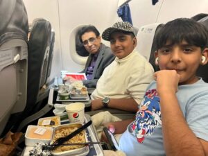 پھر میں نے اپنے بیٹوں ابسام اور افہام کو ان سیٹوں پر بٹھایا اور خود زوجہ اور بیٹی کے ساتھ ان کے ساتھ والی سیٹوں پر بیٹھ گیا
