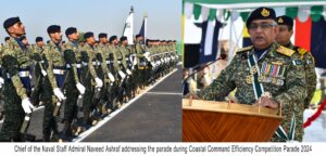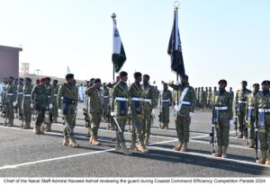 کراچی، ۰۶ جنوری ۲۵: پاکستان نیوی کوسٹل کمانڈ کی سالانہ ایفیشنسی کمپیٹیشن پریڈ برائے سال ۲۰۲۴ پی این ایس قاسم میں منعقد ہوئی۔ پاک بحریہ کے سربراہ ایڈمرل نوید اشرف نے بطور مہمان خصوصی شرکت کی۔ پاکستان نیوی کی کوسٹل کمانڈ کے تحت یہ تقریب ہر سال آپریشنل سال کے کامیاب اختتام پر منعقد ہوتی ہے۔