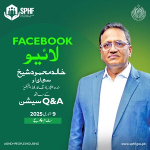 سندھ پیپلز ہاؤسنگ فار فلڈ ایفیکٹیز کے سی ای او خالد محمود شیخ نے فیس بک لائیو سوال جواب سیشن میں لاکھوں متاثرین کو مزید خوشخبریاں سنا دیں ۔