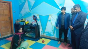 حصیدار ہیں۔ معذوری کا مکمل علاج ممکن نہیں لیکن مستقل بحالی کی کوشش کے ذریعے اسے موثر طریقے سے منظم کیا جا سکتا ہے۔ ذہنی معذوری کی بحالی صرف تھراپی نہیں ہے، بلکہ ان بچوں کو ایک باوقار زندگی گزارنے کا موقع فراہم کرنا ہے، اور یہ کام این ڈی ایف بخوبی کر رہا ہے۔انہوں نے حکومت اور نجی شعبہ جات سے اپیل کی کہ وہ عملی جامع منصوبہ بندی کے ذریعے ذہنی معذوری کے شکار بچوں اور ان کے خاندانوں کو درپیش رکاوٹوں کو دور کرنے کے لیے مل کر کام کریں۔ اس طرح ہی ہم آگے بڑھ سکتے ہیں۔ چئیرمین سندھ ہیومن رائٹس کمیشن نے سینٹر کا دورہ کرنے اور خصوصی بچوں سے ملاقات کرنے پر خوشی کا اظہار کیا۔ اس موقع پر، این ڈی ایف کی جانب سے آنے والے مہمانوں کو اعزازی شیلڈ اور دیگر تحائف بھی پیش کیے گئے۔