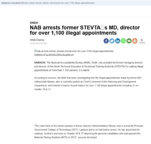 NAB arrests former STEVTAs MD, director for over 1,100 illegal appointments