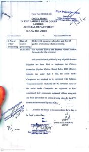 ، بل انسانی حقوق کی خلاف ورزی و اظہار رائے کی ازادی کے خلاف ہے . لاہور ہائی کورٹ میں نور محمد مہر ایڈوکیٹ کی طرف سے رٹ پٹیشن 2141/2025 مورخہ 15 جنوری 2025 کے پیش نظر حکومت سوشل میڈیا پر قابو پانے کے چکر میں غلط اقدامات کرنے پر اتر ائی ہے درحقیقت نور مہر ایڈوکیٹ کی پٹیشن میں پاکستان میں تمام یوٹیوب فیس بک واٹس ایپ اور دیگر تمام سوشل میڈیا ایپس کو پاکستان میں افس نہ ہونے کی بنا پر افس بنانے کی ڈائریکشن پاکستان ٹیلی کمیونیکیشن کو دی گئی تھی لیکن اقدامات اور بل قومی اسمبلی سینٹ اس کے برعکس نظر ا رہا ہے نور مہر ،حکومت کالا قانون پیکا ایکٹ 2025 قوانین کا اطلاق کرنے جا رہی ہے، حکومت ایسے اقدامات بھی اٹھانے جا رہی ہے جو کہ جسٹس عابد عزیز شیخ کی ڈائریکشن کے مطابق چلنے کے بجائے سوشل میڈیا کو نتھ ڈالنے پر اتر ائی ہے حکومت کے یہ اقدام انسانی حقوق کی خلاف ورزی ہیں اور شہری ازادی کے بھی منافی ہے اور پاکستان میں سوشل میڈیا کو کو اس حد تک کنٹرول کرنا انسانی حقوق کے لیے تباہ کن ہے نور مہر ،