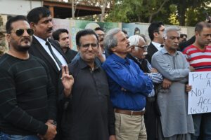 کراچی پریس کلب کے باہر ہونے والے احتجاج میں صحافیوں کا کہنا تھا کہ پیکا ایکٹ سچ بولنے اور سچ کو لوگوں تک پہنچانے کی آزادی کے خلاف ہے، پیکا ایکٹ کو ختم کیا جائے ورنہ احتجاج اسلام آباد تک جا پہنچے گا، احتجاج میں سول سوسائٹی کے کارکنوں اور وکلا نے بھی شرکت کی۔