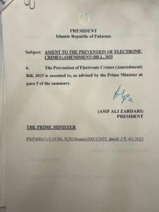 صدر مملکت آصف علی زرداری نے الیکٹرانک کرائمز کی روک تھام (ترمیمی) بل 2025 (پیکا) کی توثیق کردی۔