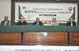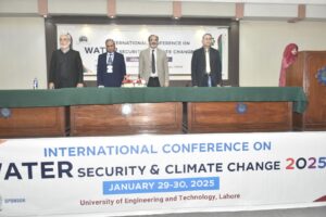 یونیورسٹی آف انجینئرنگ اینڈ ٹیکنالوجی لاہور میں پانی کی حفاظت اور موسمیاتی تبدیلی پر دو روزہ بین الاقوامی کانفرنس کا انعقاد کیاگیا۔ کانفرنس کی میزبانی سینٹر آف ایکسیلنس ان واٹر ریسورس انجینئرنگ یو ای ٹی لاہور، یو ایس پی سی اے ایس-ڈبلیو ایم یو ای ٹی جامشورو اور ہائر ایجوکیشن کمیشن پاکستان نے کی۔وائس چانسلر ڈاکٹر شاہد منیر کانفرنس میں بطور مہمان خصوصی شرکت کی اورکانفرنس کا افتتاح کیا، کانفرنس میں ملک و بیرون ممالک سے ماہریننے پانی کی حفاظت، موسمیاتی تبدیلی اور پانی کے وسائل کے انتظام کے مختلف پہلوؤں پر اپنے تجربات بیان کیے، جن میں مصنوعی ذہانت (AI) کا کردار، سیلاب اور خشک سالی کا انتظام، مربوط پانی کے وسائل کا انتظام، ٹیکنالوجی اور اختراعی حل، پالیسی اور حکمرانی، خطرے کا انتظام، سماجی اور اقتصادی جہتیں، پانی، توانائی اور کھانے کے وسائل کا تعلق، قدرتی آفات کے انتظام اور لچک، اور دیگر خصوصی موضوعات شامل تھے۔کانفرنس میں مختلف فیکلٹیزکے ڈینز، تدریسی شعبوں کے سربراہان، اور دنیا بھر سے نامور تعلیمی اداروں سے ماہریننے بھرپور شرکت کی، جن میں امریکہ، جرمنی، چین، ملائشیا، برطانیہ اور نیپال شامل ہیں۔انہوں نے پانی کی حفاظت اور موسمیاتی تبدیلی سے متعلق اہم مسائل پر دل چسپ مباحثوں میں حصہ لیا۔اپنے خطاب میں وائس چانسلر پروفیسر ڈاکٹر شاہد منیر نے پانی کی حفاظت اور موسمیاتی تبدیلی کے سنگین چیلنجز سے نمٹنے کے لیے مشترکہ کوششوں کی اہمیت پر زور دیا۔ انہوں نے جدید ٹیکنالوجیز جیسے مصنوعی ذہانت کے کردار کو اجاگر کرتے ہوئے شرکاء کو حوصلہ دیا کہ وہ مستقبل کے لیے اختراعی اور عملی حکمت عملیوں کی تشکیل میں ایک دوسرے کے ساتھ مل کر کام کریں۔کانفرنس آج بھی جاری رہے گی۔