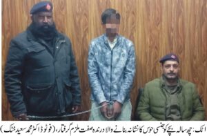 اٹک (مہتاپ منیر خان سے)نہم کلاس کے بچے کے ساتھ بدفعلی کر کے ویڈیو بنانے والا ملزم گرفتار، تفصیلات کے مطابق محمد ارشاد ولد محمد صادق سکنہ تراپ نے تھانہ انجراء میں ایف آئی آر درج کرائی ہے کہ محمد شاہزیب ولد محمد زاہد میرا حقیقی بھانجا ہے جو کہ نہم کلاس کا طالب علم ہے میرے بھانجے نے بتایا کہ سکول سے چھٹی کر کے واپس آیا تو حسب معمول بکریاں چرانے کے لیے گھر کے قریب جنگل میں گیا اسی دوران ابرار احمد ولد عبدالغفار سکنہ تراپ جنڈ اور ایک نامعلوم شخص میرے پاس آئے اور پسٹل دکھا کر ڈرا دھمکا کر بدفعلی کی،جبکہ اسی دوران نامعلوم شخص نے ابرار کے موبائل سے میری ویڈیو بنائی ،بدفعلی کے بعد دونوں نے مجھے ڈرایا دھمکایا کہ گھر میں کسی کو بتایا یا ہمارے خلاف کاروائی کی تو ویڈیو وائرل کر دیں گٓے، پولیس نے مقدمہ درج کر کے ملزم ابرار احمد کو گرفتار کر لیا ہے ۔