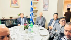 سفارتخانہ پاکستان یونان کے زیراہتمام یوم یکجہتی کشمیر کے حوالے پاکستان ہاؤس ایتھنز یونان میں پروقار تقریب،تقریب میں پاکستان کی سیاسی،سماجی،مذہبی،صحافتی تنظمیوں کے مندوبین اور کشمیری کمیونٹی کے اکابرین نے شرکت کی اور بھارتی مظالم کے خلاف آواز بُلند کی ،تقریب کا آغاز کلام الہی اور نعت رسول مقبول صلی اللہ علیہ وآلہ وسلم سے ہوا،نظامت کے فرائض احسن نبیل ڈپٹی ہیڈ آف مشن سفارتخانہ پاکستان نے اد کیے ، تقریب سے گفتگو کرتے ہوئے سفیر پاکستان یونان عامرآفتاب قریشی کا کہنا تھا کہ