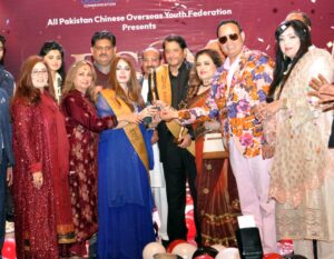 ظہیر مہر، طاہرہ شریف ،ارشد ، سلیمان ملک ،نعیم پاشا ،ملک فیصل،کنول نعمان ،ہنی شہزادی اور دیگر نے خصوصی شرکت کی ۔میلوڈی کوئین شاہدہ منی اور گلوکارہ میگھا کی پرفارمنس نے تقریب کو چار چاند لگ دئیے۔آل پاکستان چائنیز اوورسیز یوتھ فیڈریشن کی روح رواں عاصمہ بٹ نے تنظیم کے چیئرمین شجاعت علی مرحوم کی خدمات کو خراج عقیدت پیش کیا ۔ تقریب میں فلم اسٹار شاہد ،ہدایتکار سید نور،سینئر اداکار آصف خان،پرویز کلیم،غلام محی الدین ،راشد محمود ،اچھی خان،صفدر ملک ،مسعود بٹ،کلیم خان،راجو جمیل،فلم اسٹار نغمہ،ہدایتکارہ سنگیتا،دردانہ،رحمنٰ ،امروزیہ،شیبا بٹ،جرار رضوی،نشو بیگم،روبی انعم ،نغمہ نگار خواجہ پرویز مرحوم، موسیقار ذوالفقار علی عطرے مرحوم کو لیجنڈ ایوارڈ سے نوازا گیا۔سینئر صحافی صدر پی ایف یو جے افضل بٹ، صدر لاہور پریس کلب ارشد انصاری،نگہت خان،غلام حسین شاہد،ملک عدنان نے شوبز شخصیات میں ایوارڈ تقسیم کئے۔آرٹسٹ نرمل ،فلک محمود،الماس میگھا، ماہم نے بہترین پرفارم کیا،فلم اسٹار دردانہ رحمنٰ،اداکار آصف خان ،افضل بٹ،نعیم حنیف ،غلام محی الدین ،شاہد ،سید نور ،ارشد انصاری نے عاصمہ بٹ کو شاندار تقریب منعقد کرنے پر مبارکباد پیش کی۔خواجہ پرویز کا ایوارڈ سینئر صحافی مجاہد شیخ نے فلم اسٹار شاہد،سید نور،پرویز کلیم،سنگیتا،غلام محی الدین ،صفدر ملک،مسعود بٹ سے وصول کیا۔ذوالفقار عطرے کے بیٹوں بلاول عطرے اور میثم عطرے کو ہدایتکار سید نور، شاہد ،صفدر ملک، عاصمہ بٹ نے ایوارڈ دیا۔فلم باپ کے ہدایتکار ندیم چیمہ،عمران احمد اور شاعر نعیم وزیر کو گلدستہ پیش کیا ۔غلام حسین شاہد اور نگہت خان نے ہدایتکار سید نور ،فلم اسٹار شاہد ،کلیم خان،شاہدہ منی اور نغمہ بیگم کو ایوارڈ دئیے۔عاصمہ بٹ اور ماجد نذیر نے میزبانی کے فرائض انجام دئیے۔