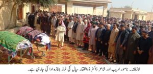 لاڑکانہ(بیورورپورٹ) سندھ کے نامور ادیب، شاعر اور صدارتی ایوارڈ حاصل کرنے والے 30 کتابوں کے مصنف ڈاکٹر ذوالفقار علی سیال مختصر علالت کے بعد کراچی کے نجی اسپتال میں انتقال کرگئے، جن کی میت تحصیل باقرانی کے گاؤں فرید آباد لائی گئی جہاں ان کی نماز جنازہ کی گئی جس میں صوبائی وزیر ثقافت و سیاحت سید ذوالفقار علی شاہ، ایم پی اے لاڑکانہ جمیل احمد سومرو، سابق صوبائی وزیر داخلہ ایم پی اے سہیل انور سیال، طارق انور سیال، ٹاؤن چیئرمین شاہ رخ انور سیال، چیئرمین ضلع کونسل لاڑکانہ اعجاز احمد لغاری، میئر لاڑکانہ ایڈووکیٹ انور علی لہر، چیمبر آف کامرس اینڈ انڈسٹری کے سابق صدر احمد علی شیخ، اعجاز شیخ جرنلسٹ عاشق پٹھان ڈاکٹر ذوالفقار سیال کے صاحبزادے شہید محترمہ بینظیر بھٹو میڈیکل یونیورسٹی کے رجسٹرار فہد جبران سیال،