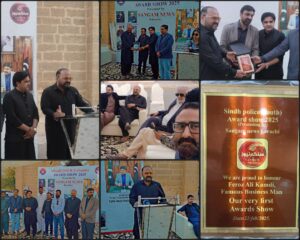 سنگم نیوز کراچی کی جانب سے سندھ پولیس ساؤتھ 2025 ایوارڈ شو پیش کرتے ہوئے معروف بزنس مین اور سینیئر جرنلسٹ اور کامدی نیوز کے سی ای او فیروز علی کامدی کو ان کی خدمات پر ایک اعزازی ایوارڈ پیش کیا، وہیں فیروز علی کامدی نے سندھ پولیس کو سراہا اور انہوں نے میڈیا نمائندو اور دیگر افراد کو بھی ایوارڈز سے نوازا۔
