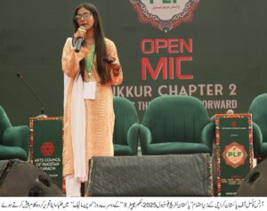 آرٹس کونسل آف پاکستان کراچی کے زیر اہتمام دو روزہ ”پاکستان لٹریچر فیسٹیول 2025 سکھر چیپٹر II“ کے آخری روز اوپن مائیک سیشن میں سکھر کے ابھرتے ہوئے فنکاروں نے بڑھ چڑھ کر حصہ لیا