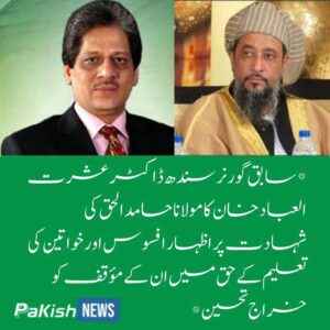 “میری پہچان پاکستان” کے رہنما ڈاکٹر عشرت العباد خان کا مولانا حامد الحق کی شہادت پر اظہار افسوس اور خواتین کی تعلیم کے حق میں ان کے مؤقف کو خراج تحسین