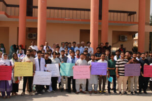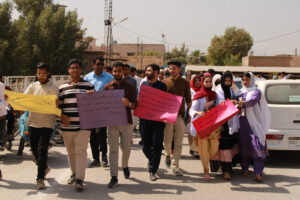 لاڑکانہ ( رپورٹ عاشق پٹھان سے): شہید محترمہ بینظیر بھٹو میڈیکل یونیورسٹی لاڑکانہ کی جانب سے حالیہ جعفر ایکسپریس سانحہ کے خلاف ایک احتجاجی ریلی کا انعقاد کیا گیا۔ یہ ریلی چانڈکا میڈیکل کالج لاڑکانہ کے ایڈمنسٹریشن بلاک سے شروع ہوکر کالج کے مرکزی دروازے پر اختتام پذیر ہوئی۔ ریلی کے بعد جعفر ایکسپریس کے المناک حادثے میں جاں بحق ہونے والے افراد کی یاد میں ایک تعزیتی تقریب بھی منعقد کی گئی۔