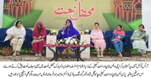 نعت خواں ثناءعلی ،عروسہ علی ، فاطمہ حسن ،فرحانہ اویس ،شازیہ کوثر،شبانہ کوثر ،افعت شاہد ،رضوانہ ،مونا نیاز بلوچ ،رابیہ فریدی ،سبین سیف ،ہما کنول ،شاہدہ اسرار،الماس نایاب ،حنا رضوان ،امیمہ ،انمول خان ،یاسمین وحید ،سحر عظیم ،فوزیہ بشیر،شازیہ خالد،ہما ناز،ارم فاطمہ ،رمشہ عابد،زاہدہ عابد،لیلہ علی ،کوثر عباس ،شہناز رضوی اور انعم قاسم نے بارگاہِ رسالت میں گلہائے عقیدت پیش کئے ،پیارے آقا کی خدمت میں گلہائے عقیدت پیش کرنے کے لیے سجائی گئی محفل نعت میں ممبران آرٹس کونسل کی بڑی تعدادنے شرکت کی ، محفل نعت کی نظامت کے فرائض ممبر گورننگ باڈی ڈاکٹر ہما میر نے سر انجام دئیے۔