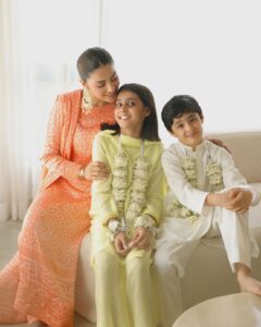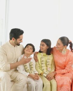 اس عید پر جوڑے نے روایتی انداز میں خوشیاں منائیں۔ عائزہ خان نے خوبصورت روایتی لباس میں جبکہ دانش تیمور نے بھی پرکشش انداز میں عید کی تقریبات میں شرکت کی۔ ان کے دو پیارے بچے حورین اور ریان نے بھی عید کی تقریبات میں خصوصی چھاپ چھوڑی۔