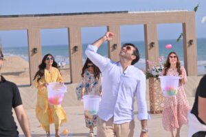 کراچی کے ساحل کے قریب ایک خوبصورت پکنک کا انتظام تھا، جہاں پاکستانی ڈراما انڈسٹری کے چمکتے ستارے جمع ہوئے۔ سب کے چہرے خوشی سے دمک رہے تھے۔ کچھ پول کے کنارے کھیل رہے تھے، تو کچھ پانی میں مگن تھے۔ ہنسی، مذاق، اور دوستانہ مقابلے کا ماحول تھا۔