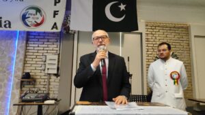 سفیر پاکستان نے اپنے مختصر خطاب میں پاک فرینڈز آسٹریا کو پروقار اور شاندار تقریب کا انعقاد کرنے پر اور حاضرین شرکاء کو 23 مارچ پاکستان ڈے اور سالانہ عید ملن پارٹی کی مبارکباد پیش کی اور کہا کہ اصل تو آپ لوگ سفیر ہیں جو دیار غیر میں اپنوں سے دور رہ کر بھی پاکستان سے محبت کرتے ہیں اور ایک ساتھ جمع ہو کر پاکستان کی تقریبات مناتے ہیں۔ جو بڑی خوشی اور فخر کی بات ہے۔انہوں نے مزید کہا کہ آپ لوگ اسی طرح پیار اور محبت سے خوشیاں منایا کریں.