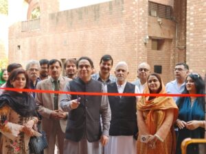 محمد تنویر مجید ایگزیکٹو ڈائریکٹر پنجاب کونسل آف دی آرٹس پلاک نے پینٹنگ نمائش کا افتتاح کیا اور فرداً فرداً ھر پینٹنگ کو دیکھا اور نوجوان آرٹسٹوں کے بنائے گئے فن پاروں کو سراھا اور داد دی