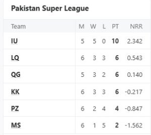 اس کامیابی کے بعد کوئٹہ گلیڈی ایٹرز پوائنٹس ٹیبل پر تیسری پوزیشن پر آگئی، جبکہ پشاور زلمی پانچویں نمبر پر لڑکھڑا رہی ہے اور اگلے مرحلے میں رسائی کے لیے مشکلات کا شکار ہو گئی ہے۔