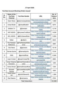 جن 16 پاکستانی یوٹیوب چینلز پر بھارت میں پابندی لگائی گئی ہے ان میں جیو نیوز کا یوٹیوب چینل، ڈان نیوز، سما ٹی وی، اے آر وائی نیوز، بول نیوز، رفتار، سنو اور صحافیوں کے چینلز شامل ہیں۔