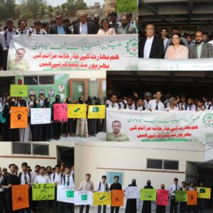 ریلی کے دوران طلبہ نے ملک کی سلامتی، قومی یکجہتی اور پاک فوج کی حمایت میں فلک شگاف نعرے بلند کیے اور بھارتی جارحیت کی بھرپور مذمت کی۔