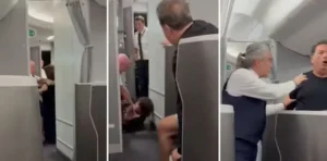 چند سیکنڈ کے اندر فلائٹ اٹینڈنٹ خاتون کو فرش پر دھکیل دیتا ہے جب وہ کاک پٹ میں داخل ہونے کی کوشش کرتی ہے اور خود کو آزاد کرنے کے لیے عملے ارکان کو لات مارنے کی دھمکی دیتی ہے۔